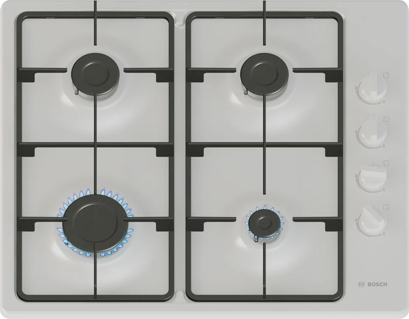 "This classic gas hob from Bosch comes in a classic white finish. A great price, too!"