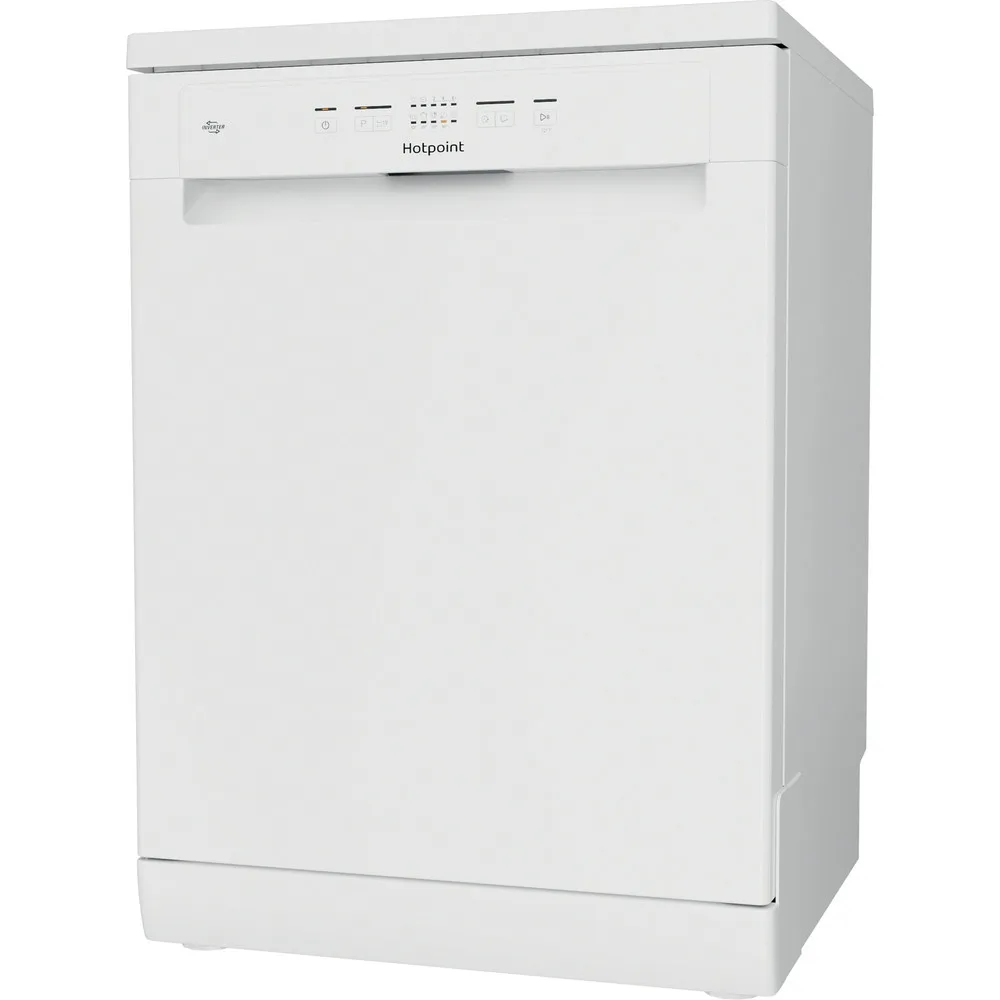 Remove stubborn, baked-on food for a sparkling clean you can count on. This full-size Hotpoint freestanding dishwasher in classic white has space for up to 14 place settings, making clean up after large family meals effortless. The adjustable baskets also offer extra flexibility, so you can easily fit large items like tall wine glasses or mixing bowls. When you need your dishes quickly, the Rapid Wash cycle cleans a small load of lightly dirty dishes in just 30 minutes. Using just 9.5L of water to wash a full load, this dishwasher cares for our planet and your pocket.