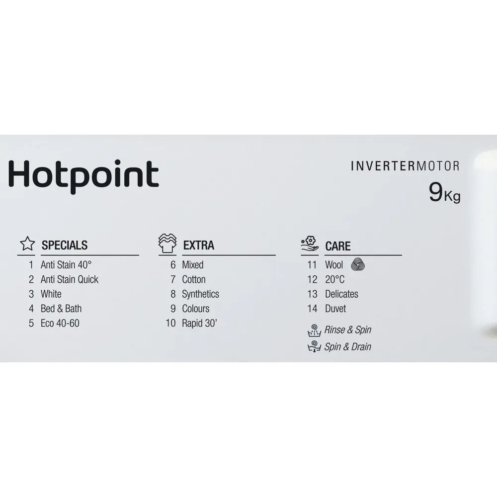 The Hotpoint BIWMHG91485UK integrated 9kg washing machine is ideal for medium to large households.