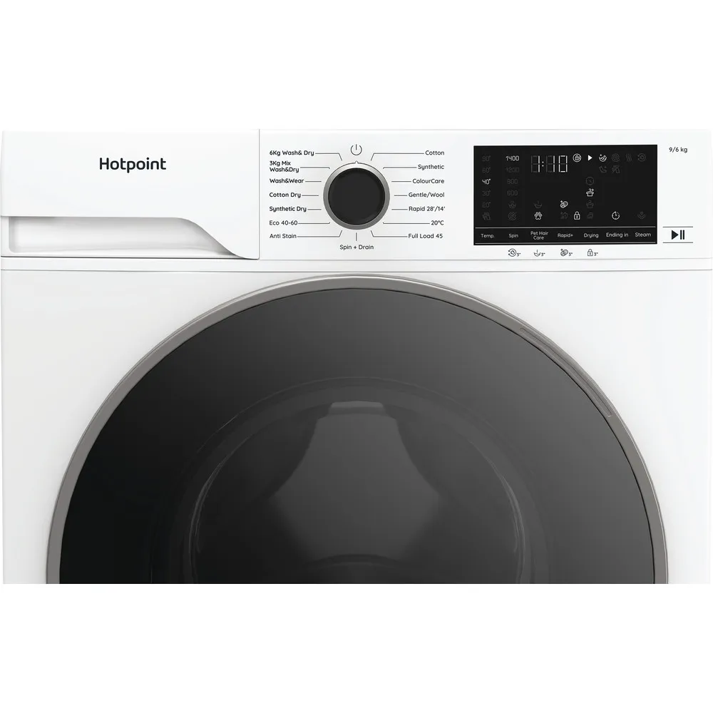 Discover the Hotpoint HBD9681ANTSTAIN Washer Dryer, designed to make laundry effortless with its impressive 9kg wash and 6kg dry capacities partnered with a robust 1400 rpm spin speed.