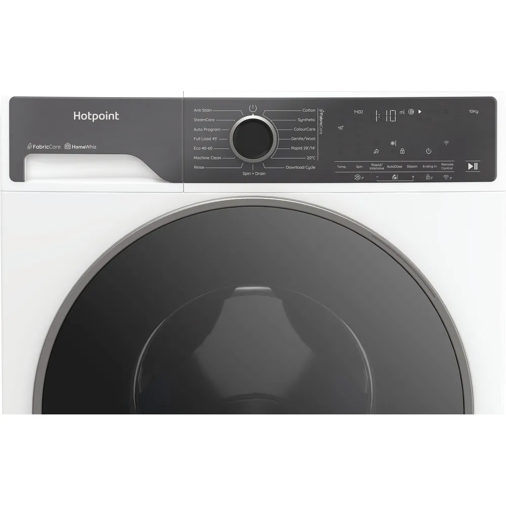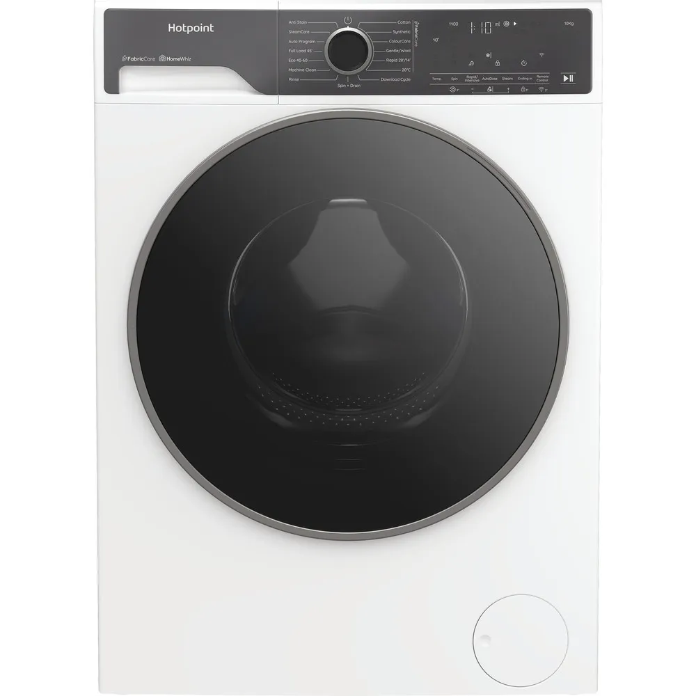 Combining sleek design and family-friendly tech, this 10kg Hotpoint Fabric Care Pro washing machine in white is built to make life easier and help your clothes last longer.