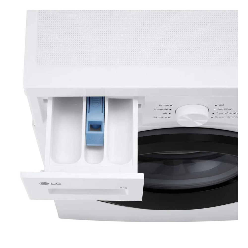 The LG F4A10S8NWK is a highly efficient washing machine with an 8kg capacity and a swift 1400 RPM spin speed, perfect for meeting the diverse laundry needs of modern households.