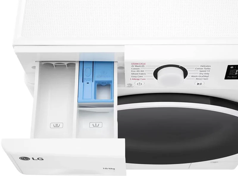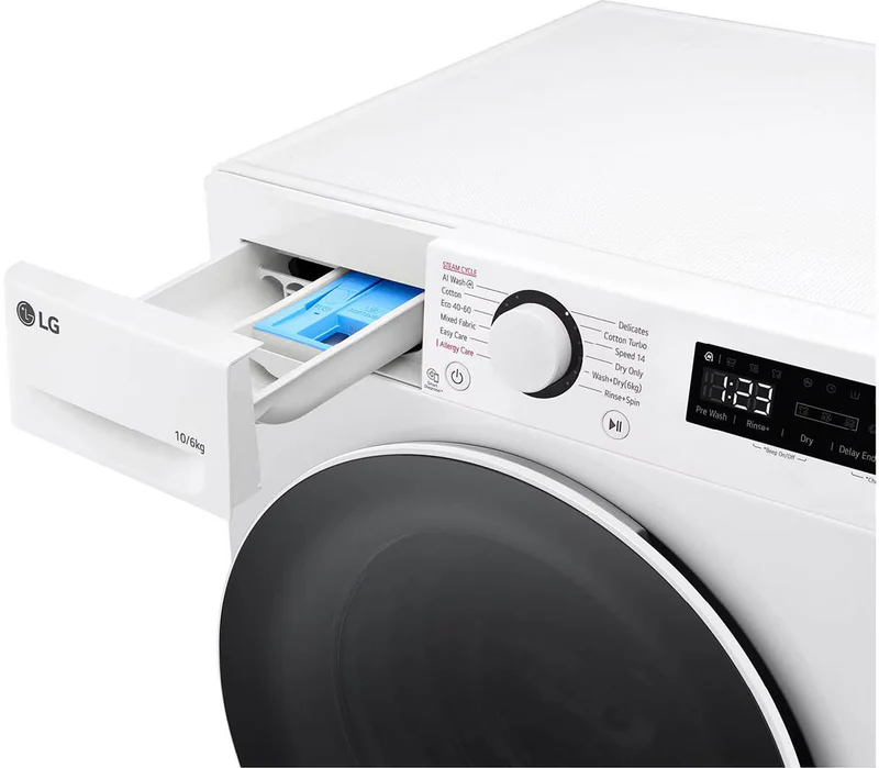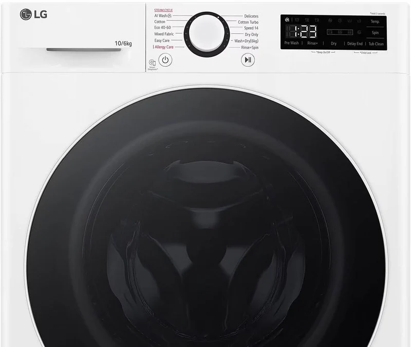 Featuring a huge washing capacity of 10KG and a drying capacity of 6KG, the LG FWY606WWLN1 is ideal for handling large loads, reducing the number of wash cycles needed per week. It spins at a maximum speed of 1400 revolutions per minute, ensuring that clothes are not only clean but also nearly dry at the end of the wash cycle, significantly cutting down drying times.